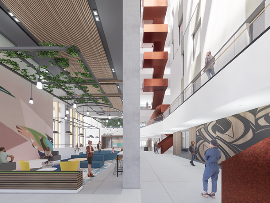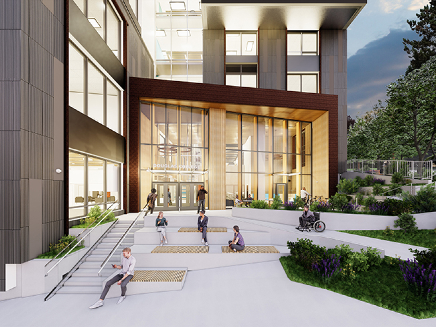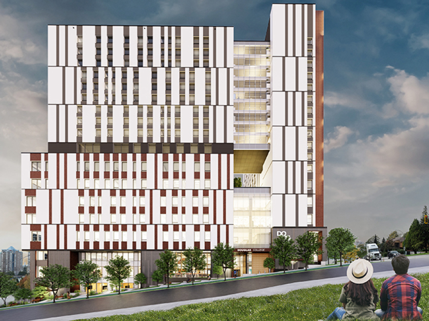 Douglas College is building its first-ever student housing project at 808 Royal Avenue, marking a significant investment in its New Westminster campus. Once completed, this 20-storey building will feature 368 student beds and 11 storeys of academic space, including classrooms, labs, collaboration spaces, and food services. The project is being built to meet LEED Gold standards, achieve zero carbon certification, and comply with BC Energy Step Code 4. It aims to address the demand for more student support and create a community where students feel connected while balancing academics, work, and life.