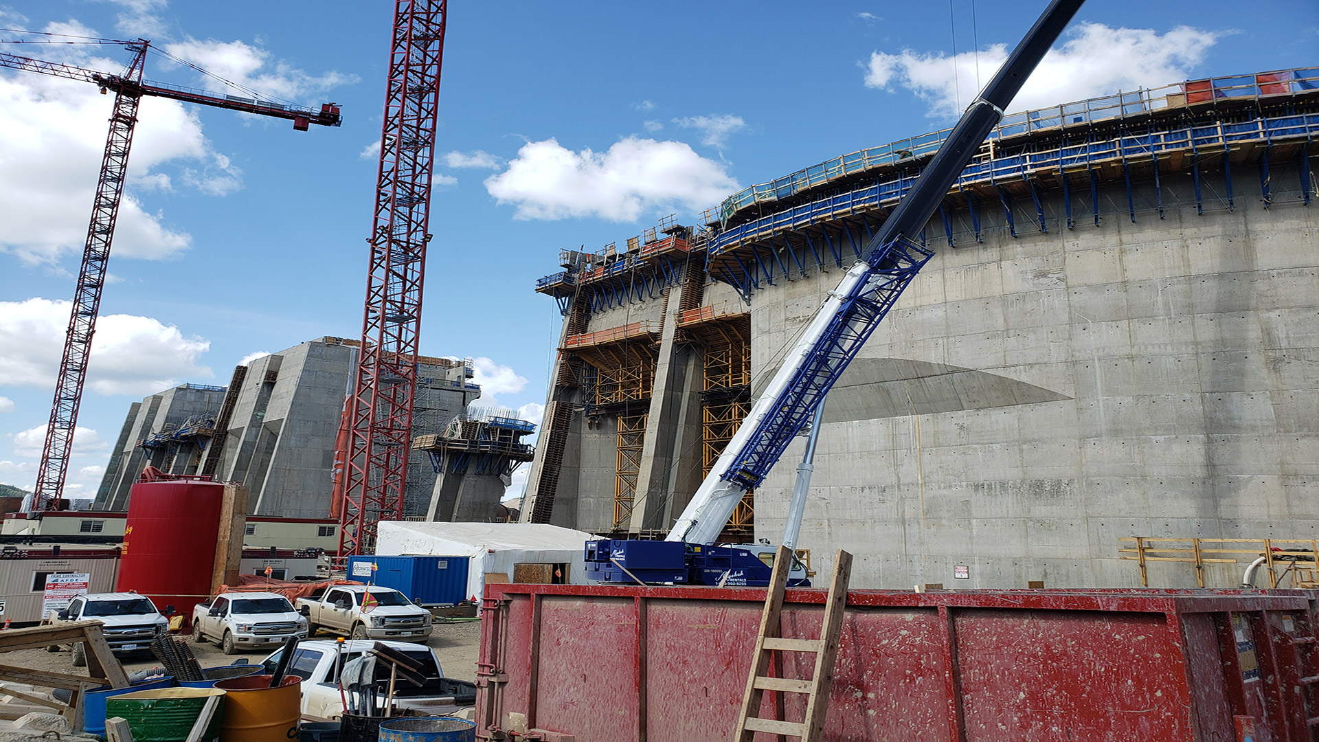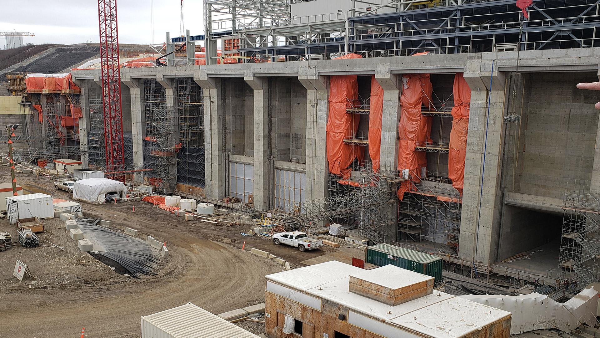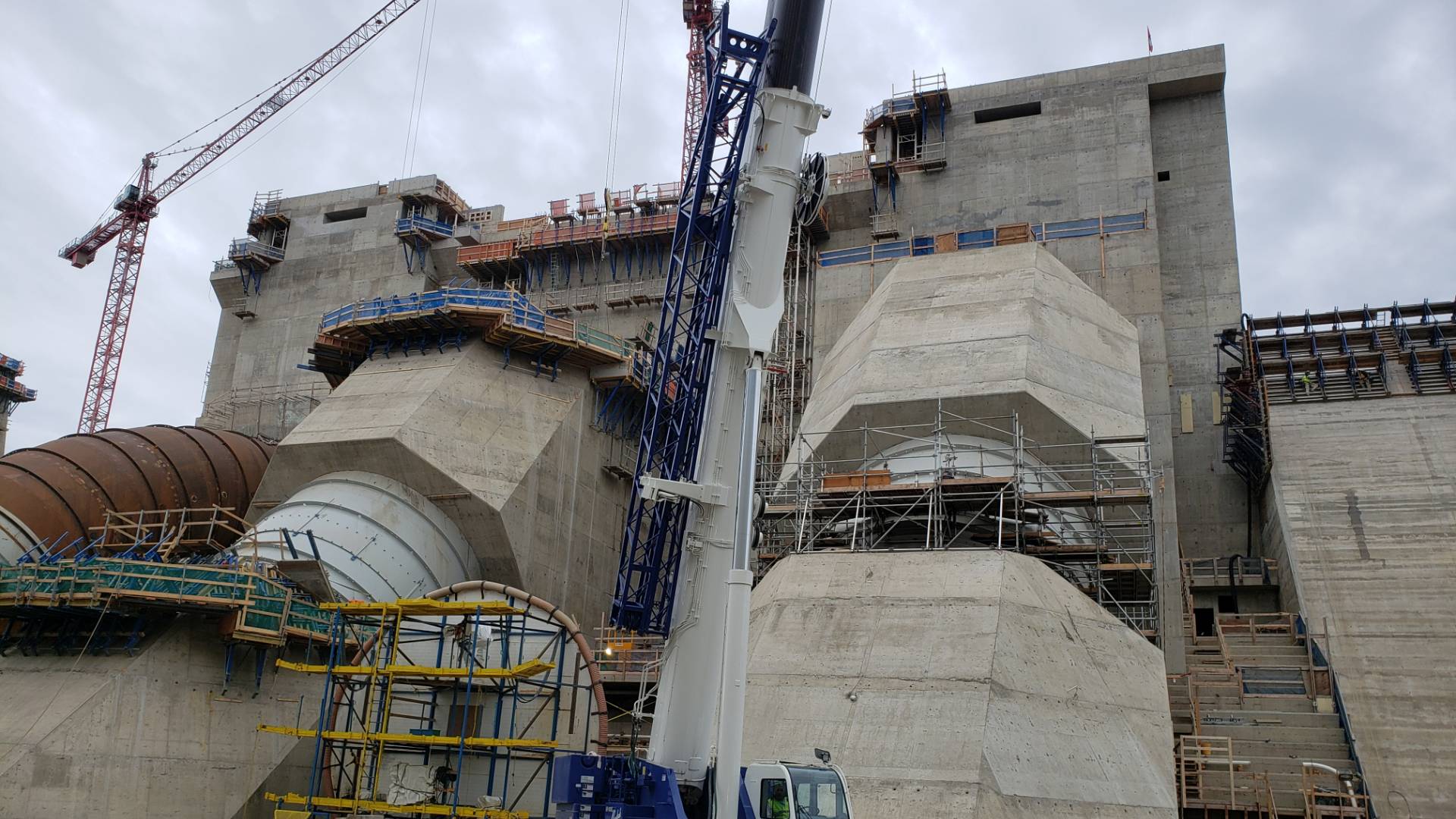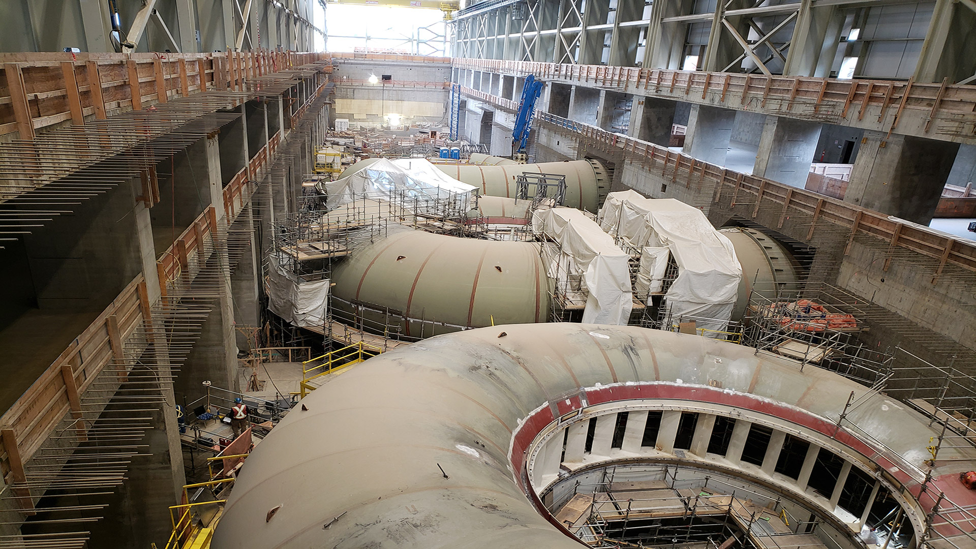 Our scope for the Spillways and Generating Station includes the supply and installation of all permanent grounding, embedded conduits and duct banks for the entire generating station, and powerhouse high-bay lighting in the Main Service Bay. Our scope also consists of the design-build of the temporary power system required to provide construction power for all the equipment and material to AFDE and other major contractors on the site for the five-year duration of the project. As of 2022, we have installed 5km of overhead 25kV lines, 25 25kV unit substations, nine 500kV pole-top transformer setups, and fibre optic cable for communications.